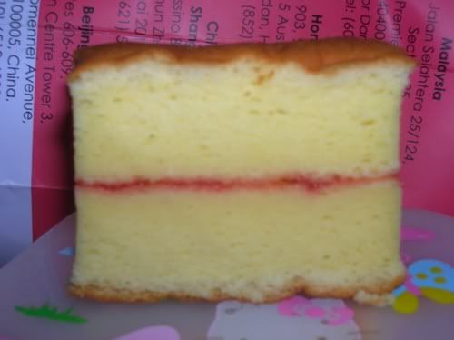 蛋糕店卖的中间是涂了butter cream。我自己则涂了草莓果酱。不会太甜。