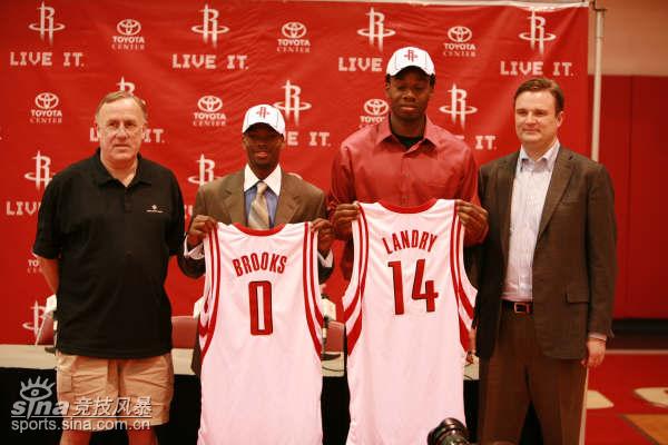 新浪体育讯 北京时间6月30日凌晨,选秀结束后的火箭队召开了媒体见面会,在见面会上,两位新秀布鲁克斯和交换得来的兰德里,在火箭队总经理莫利和主教练阿德尔曼的陪同下与当地媒体正式见面,并回答了记者关心的问题。