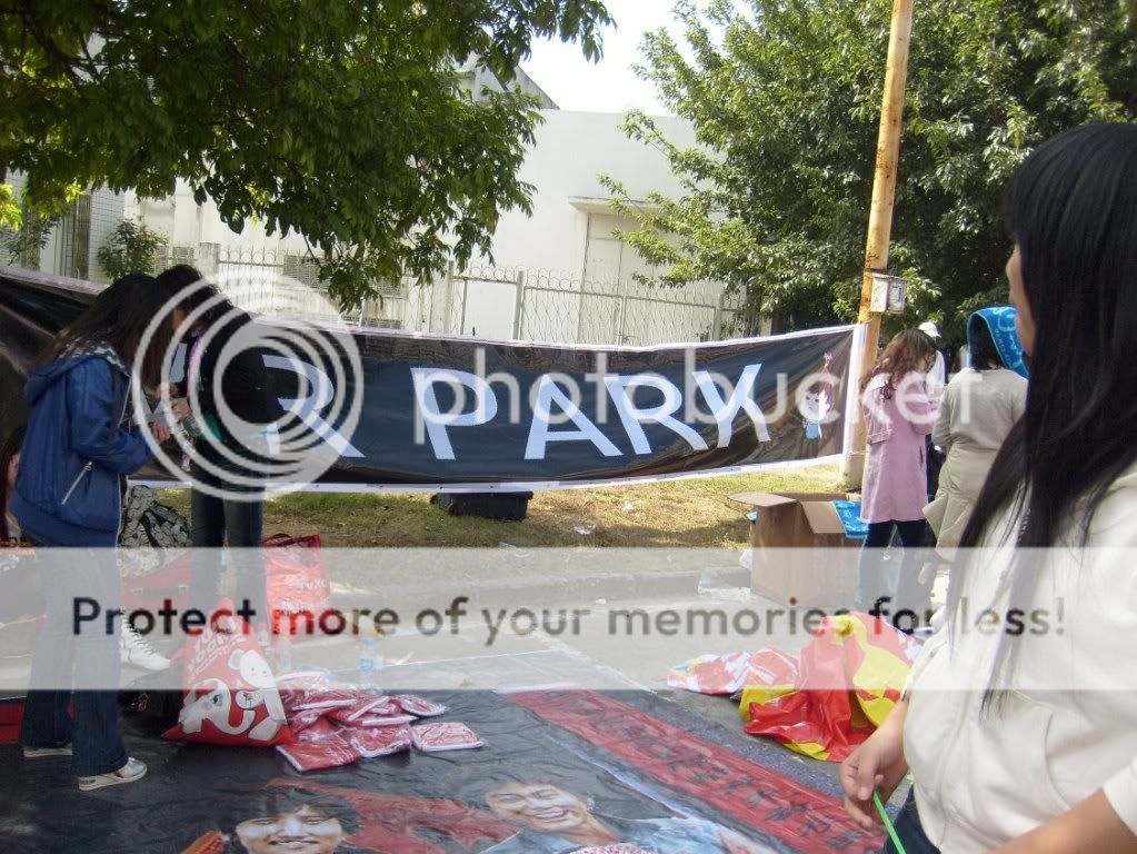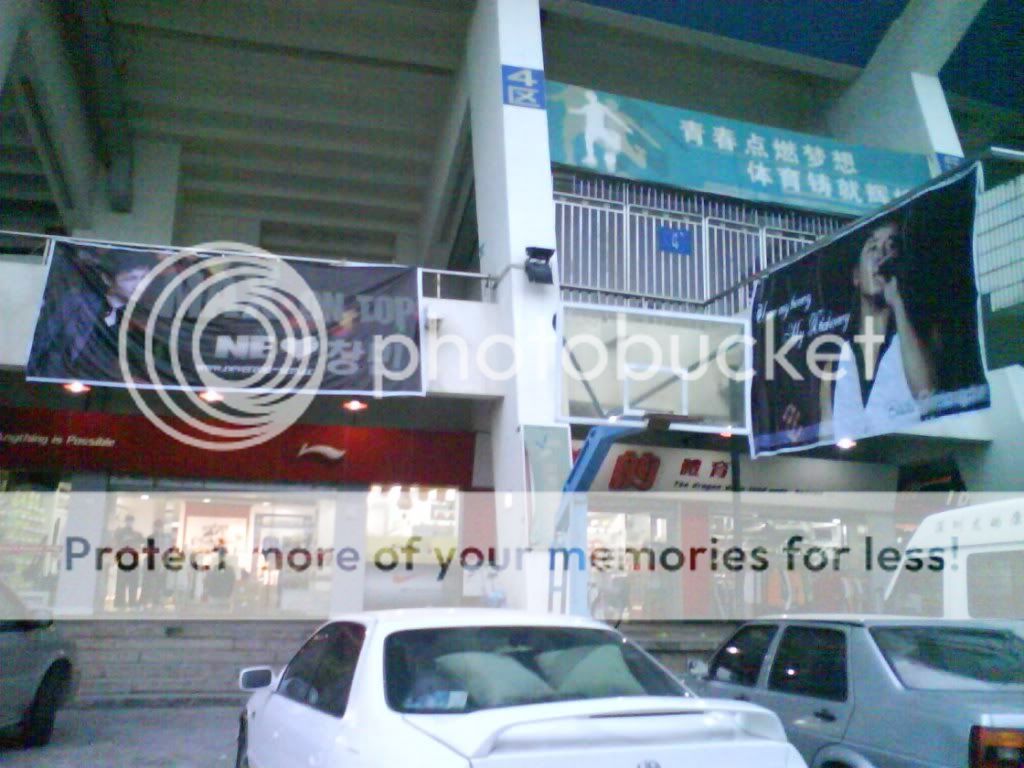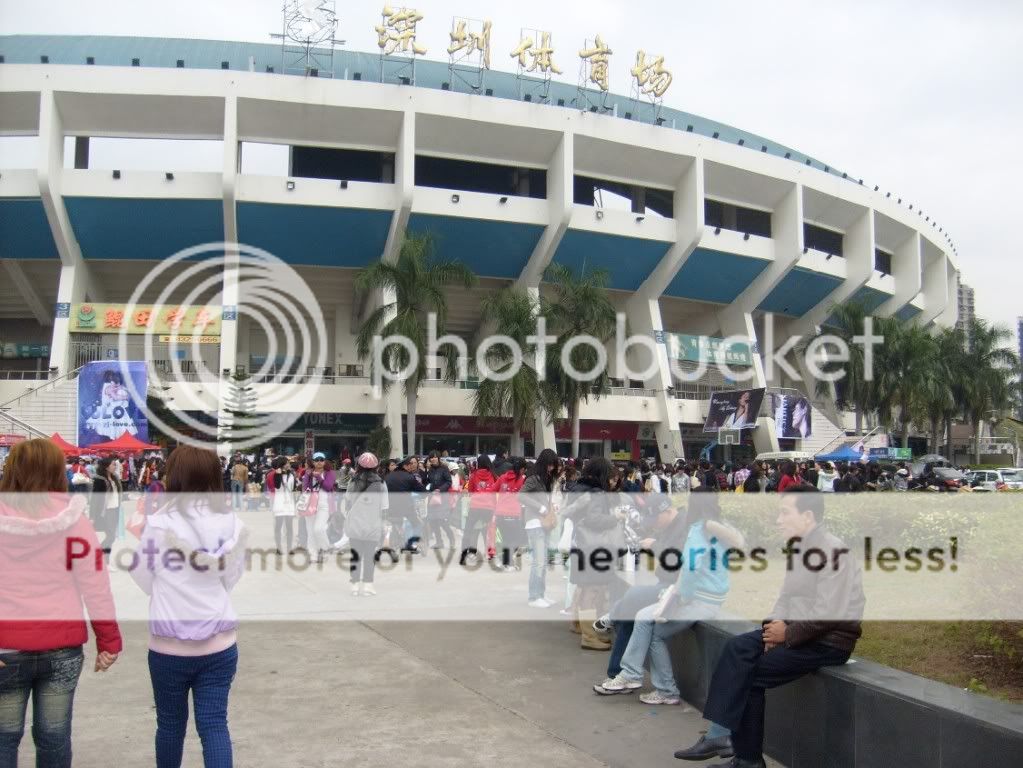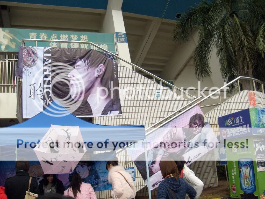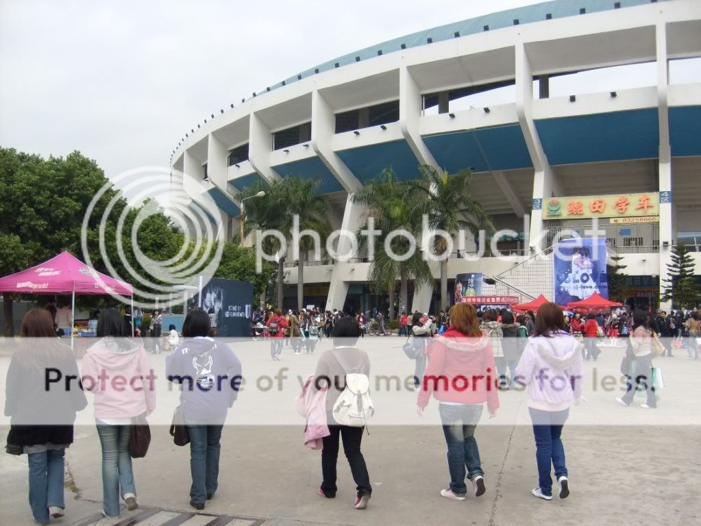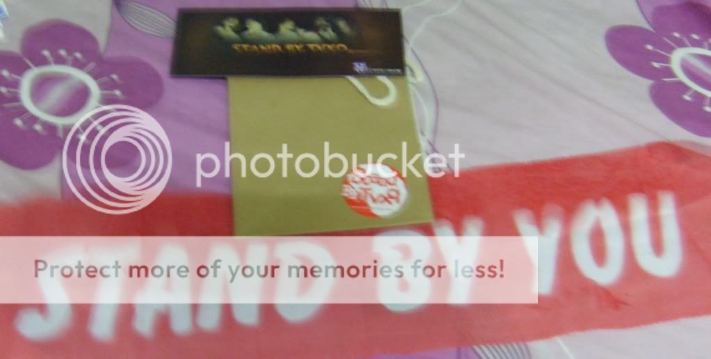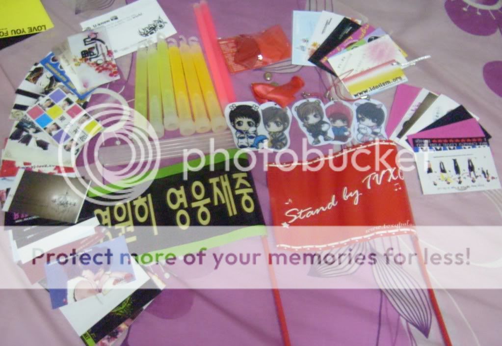 入场的时候会拿到一个袋子~里面有一个红色荧光棒, 两粒气球, 食物+水 , 还有布条~~