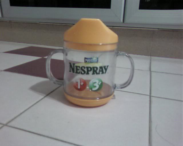 喔。原来是这样的杯子。阿轩要吗? 我也给涵用这种杯,大该她8-9个月时,我用来骗她喝水的,现在她看都不看了。
