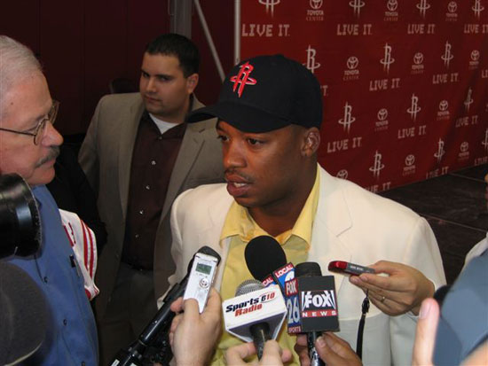 弗朗西斯看到中国记者显得非常高兴,他说:”我非常感谢中国球迷始终对我的支持和欣赏,我要跟所有的中国球迷说hello,我要告诉他们我又回到火箭队了。这是一次来之不易的机会,但是我毕竟成功了。我昨天晚上刚和姚明通过电话,我们谈了很多,在此不必长叙。但是我可以告诉你们我们谈论了如何使火箭队的体系更好一些。我和姚明不是普通的朋友关系,我们共有一个理念,同怀一个目标。那就是冠军。