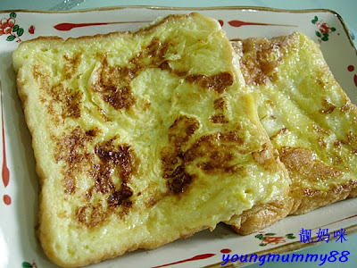 这个是。。。。。很久以前的某个早晨,孩子们没上课的日子,看到有面包,就打散了2粒鸡蛋,加些糖打匀,把面包放进去浸至整片面包吸收蛋液,平底锅放些奶油(牛油),中小火融化奶油后,放进面包慢慢煎至两面金黄就可以了哦!