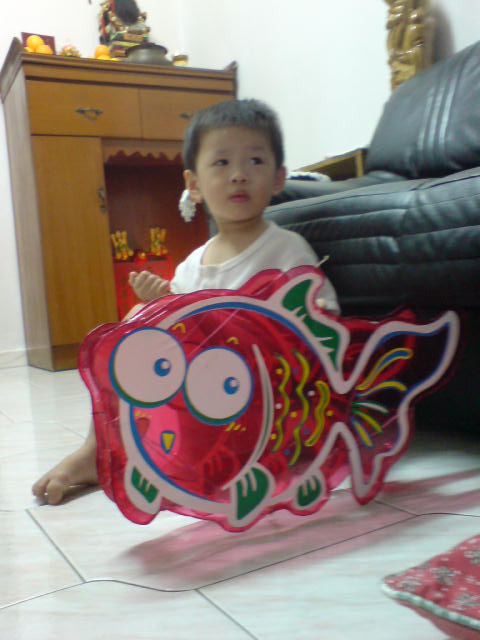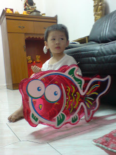 去到那最初找到双是有灯在鞋底的, 结果这胆小家伙就是说怕!不要! 没办法咯!不甘心嘛~去到那买不到就惟有再找过~ 好了~找到现在大家看到的这双,就问要8号试看。 结果穿上去是很紧那种~就问要9号~ 怎么知道9号却没货~只有10号。 惟有说try看啦!结果给铭铭穿上去是好像偷回来的鞋子这样子!