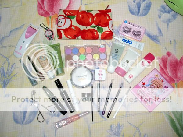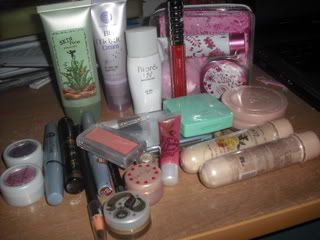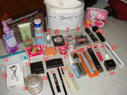 我也来贴贴,不过我没有用化妆包的习惯,都是放在抽屉里的。除非有出远门。然后阿我也很少买化妆品,所以东西少请别见怪哦!!