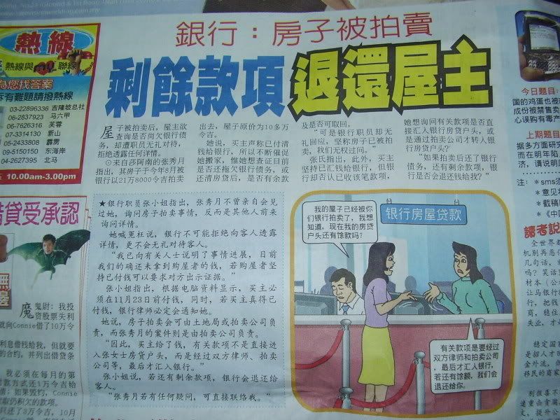 要一提的是,之前皮皮屡次登门时,曾告诉屋主投标价和计划几时搬进来。可是这个屋主以“银行什么都没通知我”和 “银行都没有要我签名”为理由, 拒绝回应皮皮, 也耍赖的对我们说 “我什么都不知道”。直到皮皮confirm 了律师已经完成了手续,才赶他们走。