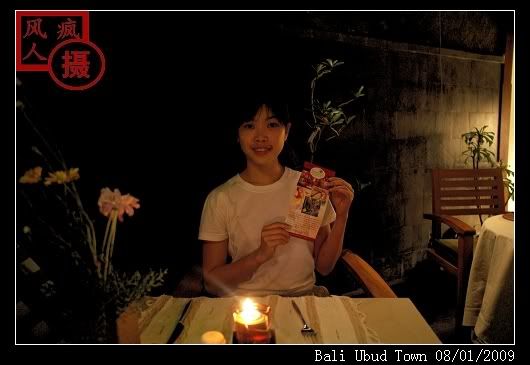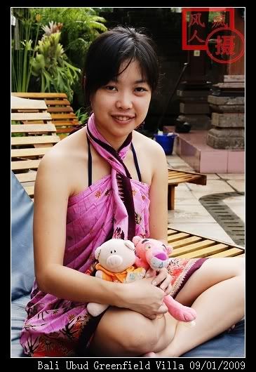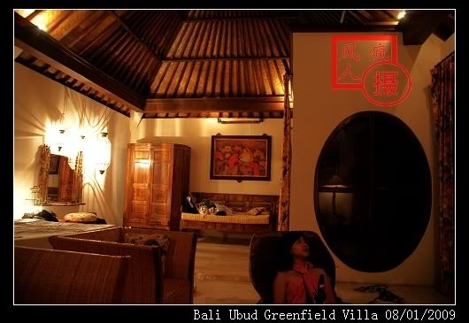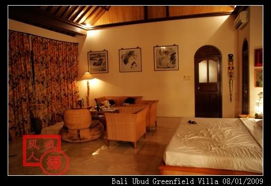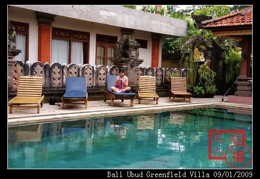 走进Greenfield villa,爱丽丝先跑去隔壁的tegal sari问,不过tegal sari因为比较便宜和热门,早早就爆满了。结果我们只好跑回来Greenfield问价钱,爱丽丝开口用马来话向柜台问价钱,柜台的人先是一呆,反过来用华语问我们,哦,原来是在当地工作的台湾人。爱丽丝看了看价钱,我想到是来度蜜月的,就叫爱丽丝拿贵一点的房间也无所谓,反正都目前为止每天预算的花费连一半都没到,今天已经是第三天 了,稍微豪华点应该没问题,毕竟常常去自助背包住惯那些10块美金以下的住宿,这次来是度蜜月就应该可以好好宠宠自己。