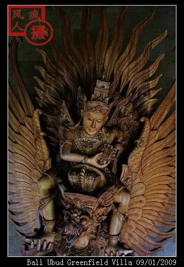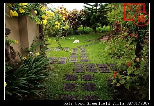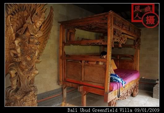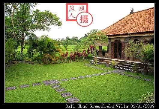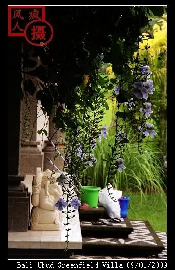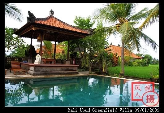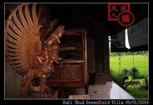 怪不得满街都是木雕像,原来是木雕村。我们继续找路中,15分钟后,终于抵达乌布市区,很幸运的是,一转进乌布市区,我们就看到我们打算要住宿地方的指示牌。就是Greenfield Villa,也是佳礼很多来过巴厘岛乌布都强力推荐的稻田旅馆。