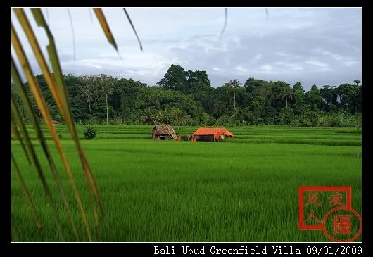 和柜台的人讨价还价后,greenfield目前刚好在装修中,稻田边在建新一排的半独立式别墅,目前正好有一间独立式的别墅空着,可是因为大厅窗口左边面向工地,所以稻田风景不是很好,如果我们要住,可以特别优惠给我们。无论如何,我和爱丽丝先去看看环境,发觉只是左边一小块是工地而已,杀价后,90元美金杀到60元美金一天,就决定要这件独立式别墅。