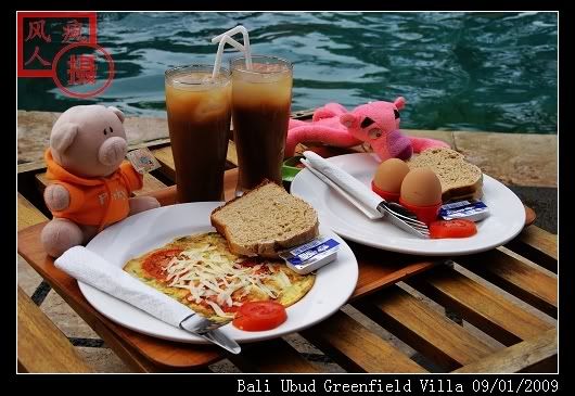 向Greenfield叫的早餐,分量虽然小,可是在泳池边悠闲用餐,吹着稻田凉风,也算是人生一大乐趣。。 |