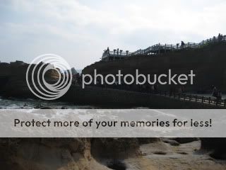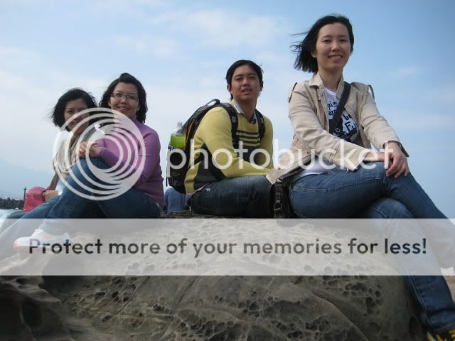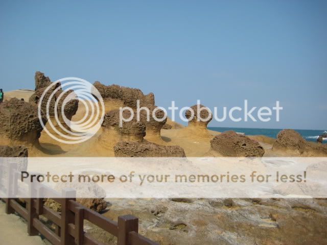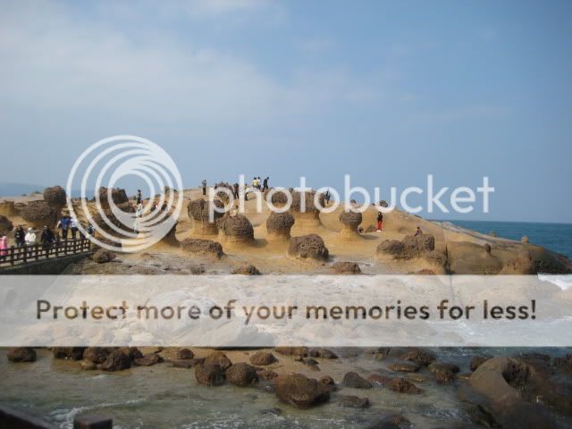 过后,又是走路到总车站,搭国光客运去野柳,NT96/人。用现钱买的,忘了用悠游卡。。坐了1小时15分钟的巴士,在11.15am抵达了野柳。可是还要走一段的路才能到达,沿途中,看到了“美而美”早餐店,又买了些早餐吃,一点都不好吃很油。。就去7-11买饮料喝。边吃边走,到了售票处,买了5张票(NT50/张),妈妈走不动,没和我们进去。