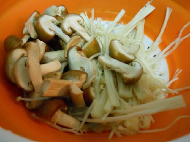 材料: 日本菇,金针菇,冬粉(浸泡)