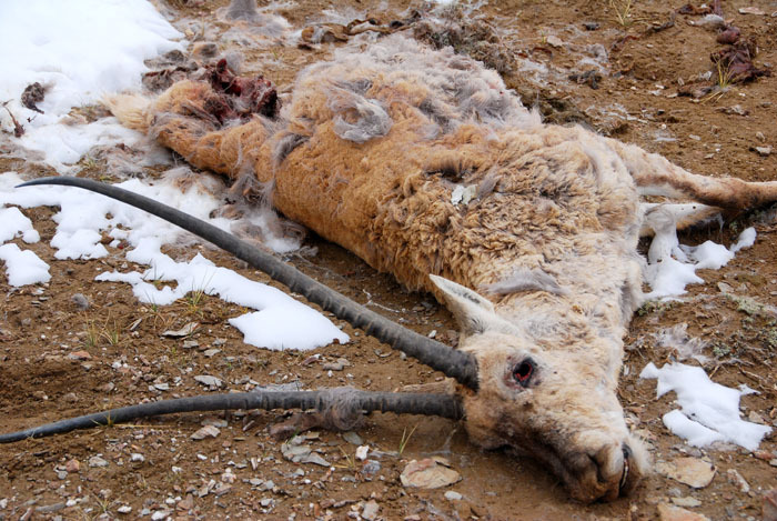 被乌鸦啄去的眼睛的死藏羚羊