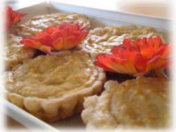 4. 將裝好麵糊的塔模放入烤箱內以華氏350度烤25分鐘,直到內餡凝固,即可取出烤箱,放涼後脫膜。食用時可撒少許白糖粉,或搭配打泡之鮮奶油。 |