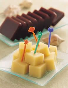 (3)過篩後倒入模型內放涼即為羊羹,食用前切片或切塊均可。