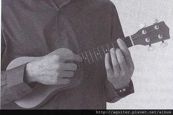 (1-6) 『基本功的訓練』──左右手的天天暖手練習 左手的練習: 首先說明一下左手的握法: 左手姆指在琴頸後方中間或偏上面一點皆可,其餘四指輕握在琴弦之上即可,按弦時使用指腹按在琴格上靠近每格的右邊銅條處,按在這個位置可以讓你得到紮實飽滿的聲音。 照片 影片 左手的握法ok之後,開始配合上面的右手練習搭配彈奏每一個格子,訓練左右手的配合與每一格音階的感覺: