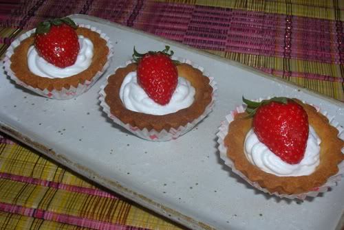 miao miao,我的家的照片全看不到了,因为我这个月PHOTOBUCKET的LIMIT到了,不能再UPLOAN照片了,(ROSE告诉我才知道的)心里一直忐忑不安不知道那些照片还会再重现吗.加上今天的网路好像有点问题,像乌龟酱慢,真的很烦涅.现在看到你的挞,我的心情立刻有好点了,尤其是那红白配的挞.上次我时常买了韩国的草莓都很想做这种挞的,就因为怕肥而作罢了.你不会怕吗? |