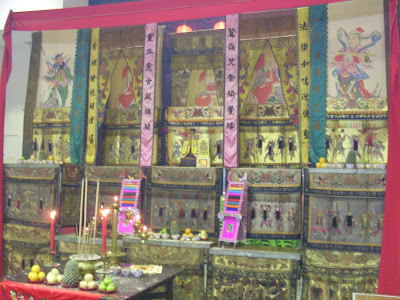 每年的妈祖寿诞都会聘请僧侣前来举行佛教法会,同样的盂兰胜会也有请僧侣在礼堂做佛教法会 |