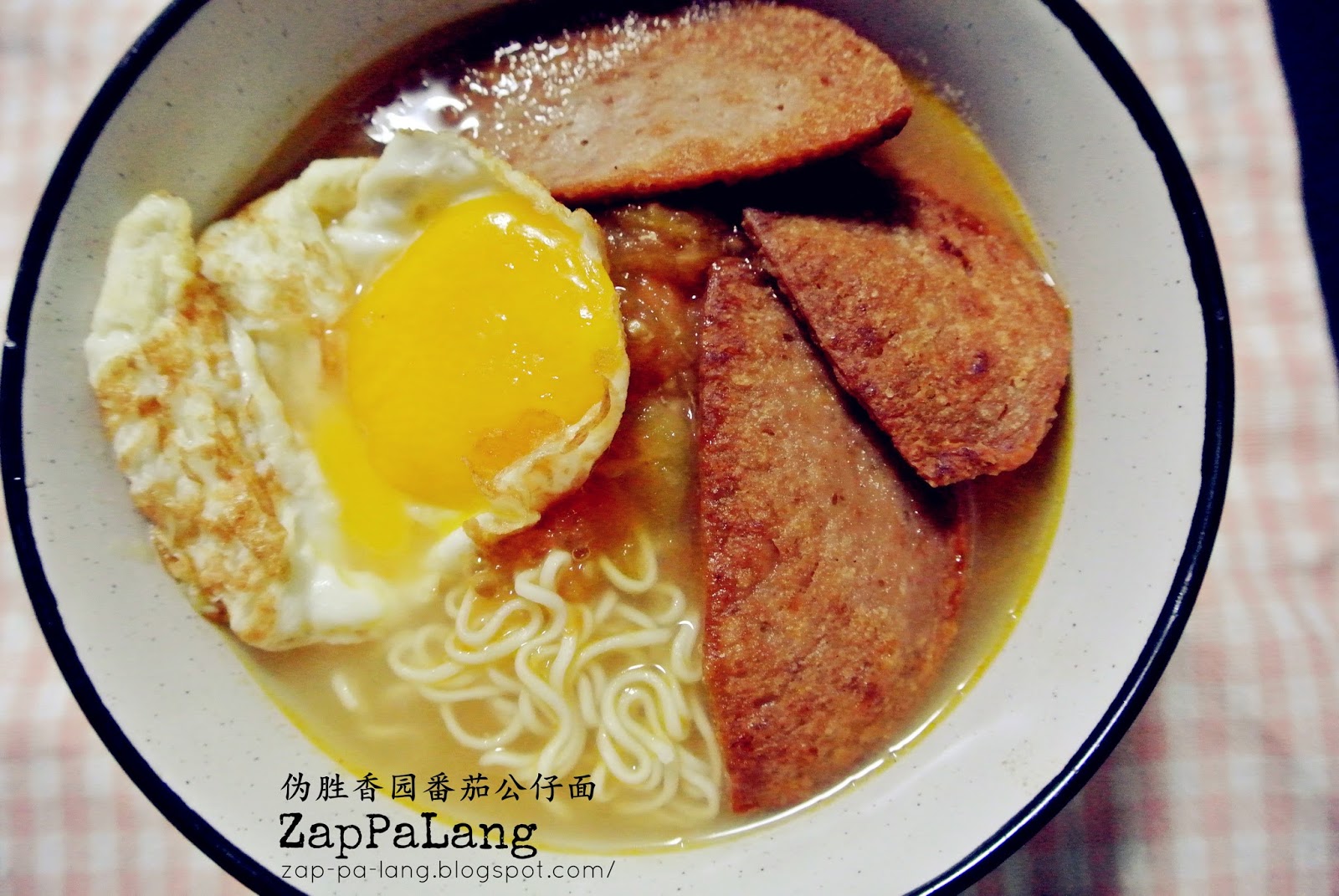 部落格原文 http://zap-pa-lang.blogspot.com/2015/07/tomato-soup-noodles-with-luncheon-and.html