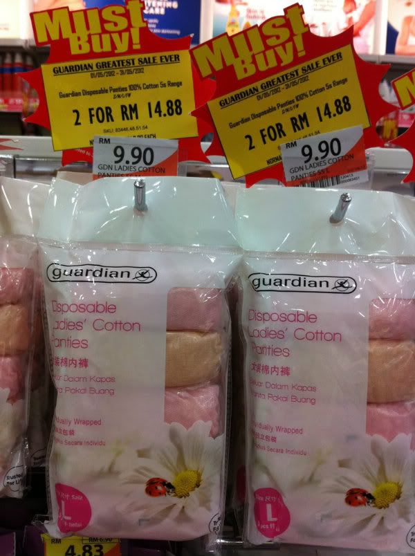 Watson的RM6.9買二送一...我現在一共有51條disposable panties, 應該夠應付我穿爛/骯髒了要換了吧!