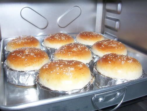 我所用的烤盘的底部是可以拿拆的,不过我有用一张大张的Aluminum Foil包著(从底部到盘的顶部)。可是当烤好后移开Aluminum Foil时,发现里面既然有水可能是因为这样所以蛋糕才不会涨吧!!!