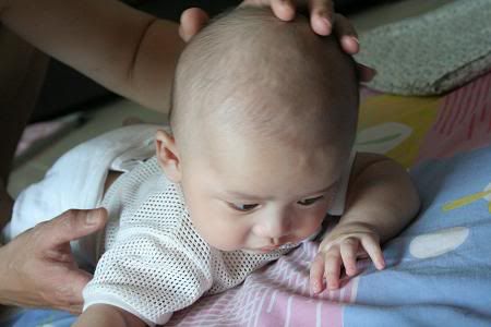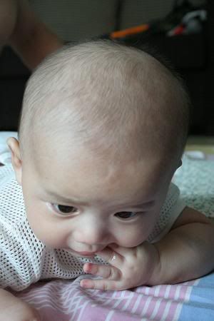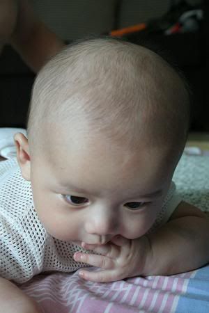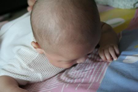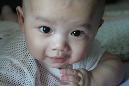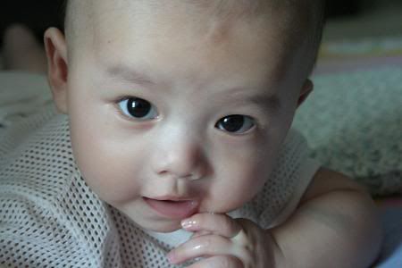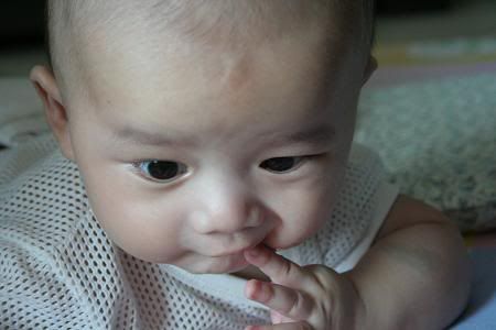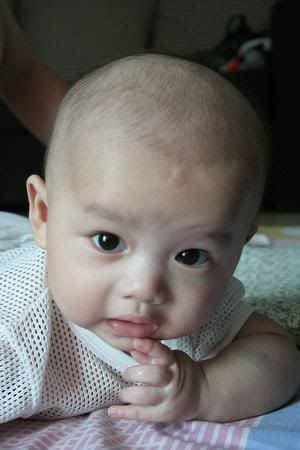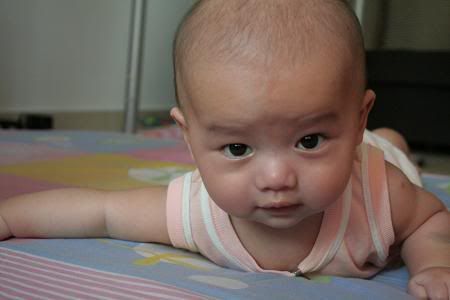 哈哈。。。文傑趴住的樣子很可愛涅。。。不懂我的晴晴幾時才會。。。現在都三個月的還不會反。。。 |