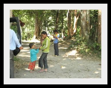 离开女皇宫,我们要上山去了。来柬埔寨之前准备了一些打算送给当地小孩的东西,因为Sithol说孤儿院常常都会收到这些手信,所以里面的孩子还不比那些住在较偏远的山区更需要这些礼物,所以他建议我们在沿途中可以停下来把那些礼物分给那些更穷苦的孩子们。从暹粒到Kbal Spean 大概需要一个多钟头的车程。今天特别累,上山的路非常颠簸,好像过山车一样,把我颠得晕头转向。