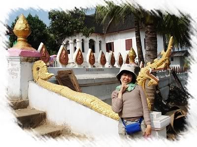 离开寺庙,走没多远就是龙坡邦夜晚洋人聚集的酒吧街,我们在其中一间很不错的酒吧前拍照留念。