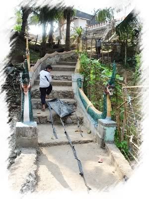 村尾是一条小河,天真的寮国小孩在开心嬉戏着,他们没有像其他国家小孩那么幸福有什么ps2或pc来打game,只是简单地把黑塑胶袋撕开,再缝在竹架上就成了一个随风飘扬的风筝。但是他们天真和快乐,绝对不会输给其他国家四眼呆呆望着萤幕的四眼框。。
