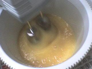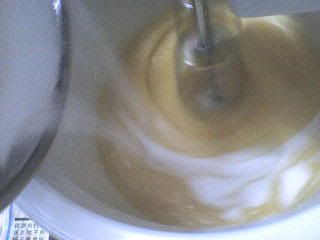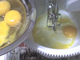 我看到你好象是用粗糖是吗?如果是的话,酱蛋会比较难打发的. |