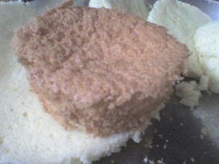 这次有成功了哦 蛋打了多久? 可以再打久一点, 让它更浓 我以前一开始做,也是蒸的成功过烤的 有粉粉是因为粉你没有搅拌均匀啦 |