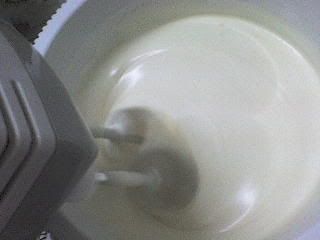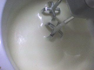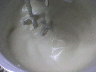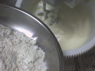 还有你可以面粉加下去后,用搅拌机的低速打个3-4秒,记得让搅拌器在搅拌盆的四周打打下,让面粉均匀的稍微混合,然后再用朔胶刮刀由搅拌盆的底部把面湖搅拌上来,面糊的中间通常会有面粉沉在那里没搅拌到,所以也要注意下~