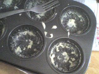 你有搽点油在你的烤模吗?虽然是不沾的,但还是搽一点比较好~