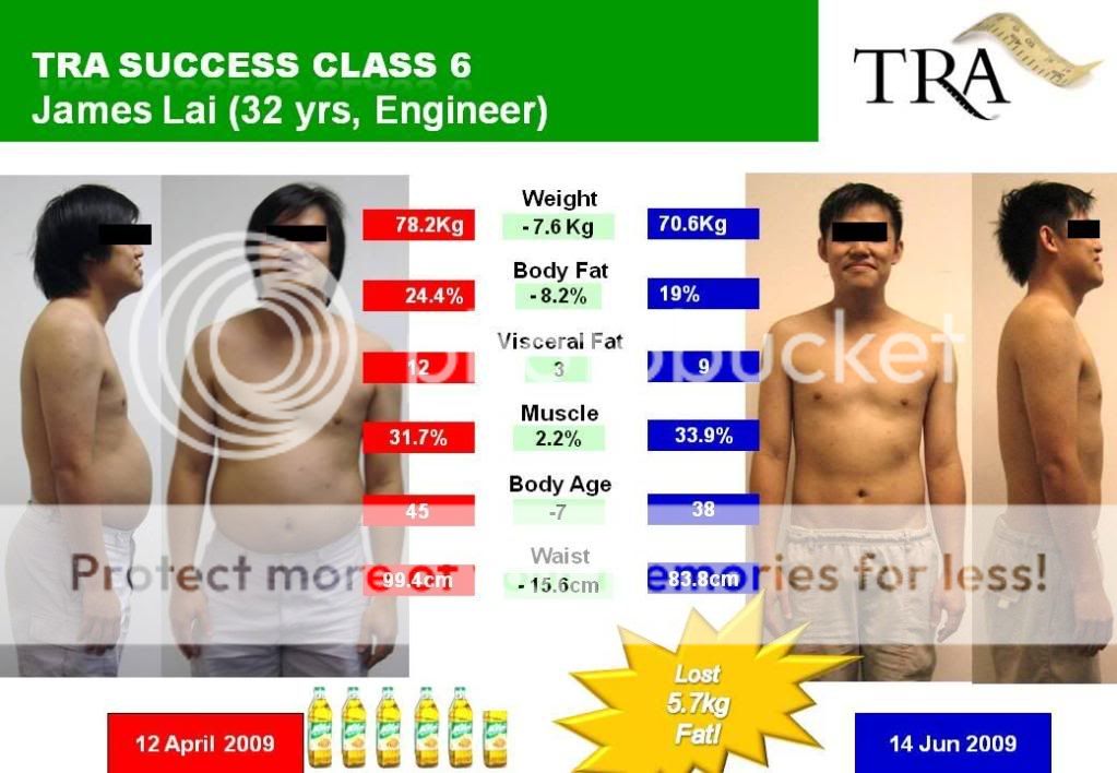 这是我上TRA保证班两个月的成果。其实我的成绩可以做的更好。只是做了一个月成绩已经不错了,后期就没那么努力了。保证班的目的是在帮助你减肥(或增肥)时,同时也灌输你一套方法,让你在瘦身后不需要靠任何的减肥产品下维持身材而不反弹。