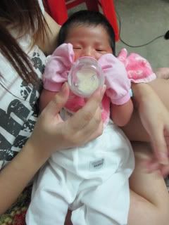 他可能是紧张。。所以才去握奶瓶。。嘻嘻 ~ |