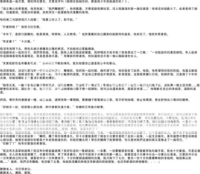 不是不离。我去JPN办离婚,他们说我的CASE是轻微而已IF COMPARE跟其他人。(因我先 ...