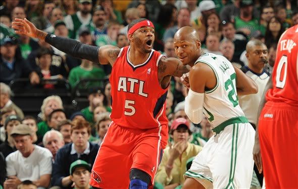 北京时间5月7日,在NBA季后赛东部首轮第四场比赛上,凯尔特人队主场以101-79战胜亚特兰大老鹰队。“绿军”外线手感火烫,朗多和皮尔斯统治比赛。而在内线球员的PK上,绿军防守致胜,加内特砍下13分和5个篮板外加2次抢断,巴斯贡献10分和5个篮板。尽管“妖人”约什-史密斯砍下15分、13个篮板和5次助攻,但是他13投仅仅5中,而且出现了6次失误,另外一个首发中锋科林斯一分未得。复出的霍福德砍下12分和5个篮板,也无法在绿军的铜墙铁壁面前占到便宜。