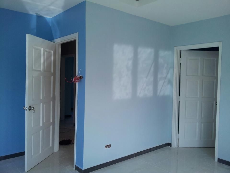 現在又油了藍色,幸好我買的首飾鏡是白色,窗簾是米色,窗口框是白色,床單是淺藍配白色。