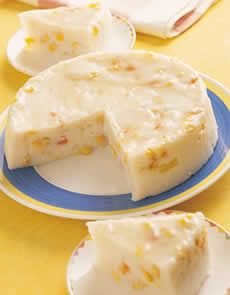 (3)蛋白打發,將(2)料倒入,邊倒邊調打均勻,再倒入模型中,撒上椰子粉待涼,入冰箱冷藏,食用時取出切塊。 |