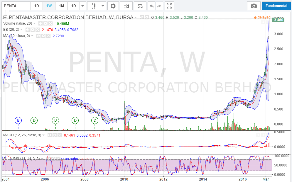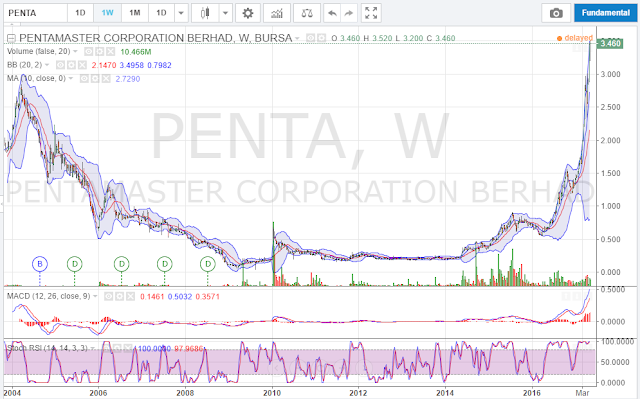 过去一周,半导体相关行业的股持续发热。先有JHM宣布派发bonusshare,然后4月份全球半导体领域成长高达21%,然后FRONTKEN以RM13.3million增持台湾子公司11.42%股权,至84.6%。而昨天PENTA亦宣布全购子公司剩余的股份。