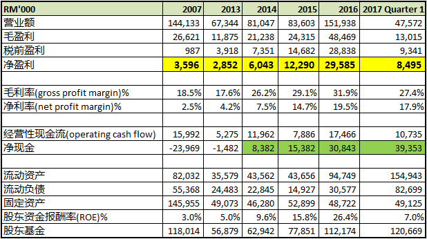 至于PENTA也不逞多让,以RM6million收购子公司PISB剩余40%的股份,成为独资子公司。PISB主要生产automatedtesting equipment and test and measurement systems,是PENTA目前最赚钱的业务。2016年PISB的净利达到RM6.4million,40%的股份就表示RM2.56million的净利,这让PENTA的净利即使在没有成长的情况下因此股份增加而净利上升10%左右。