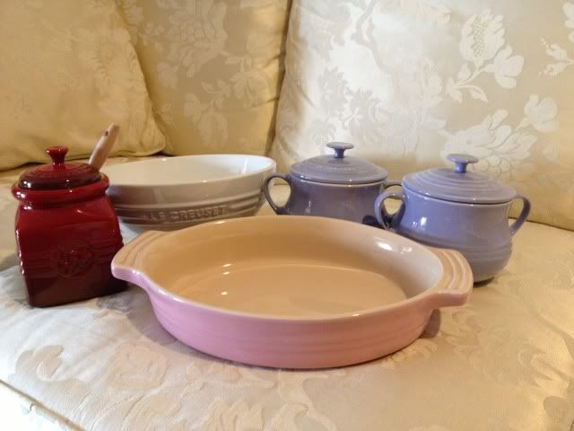 败物: 珍珠白大碗,去年买了个红色的,今年买白色,粉红oval baking dish, 一对lavendar 汤盅,这个汤盅最抵,才74.