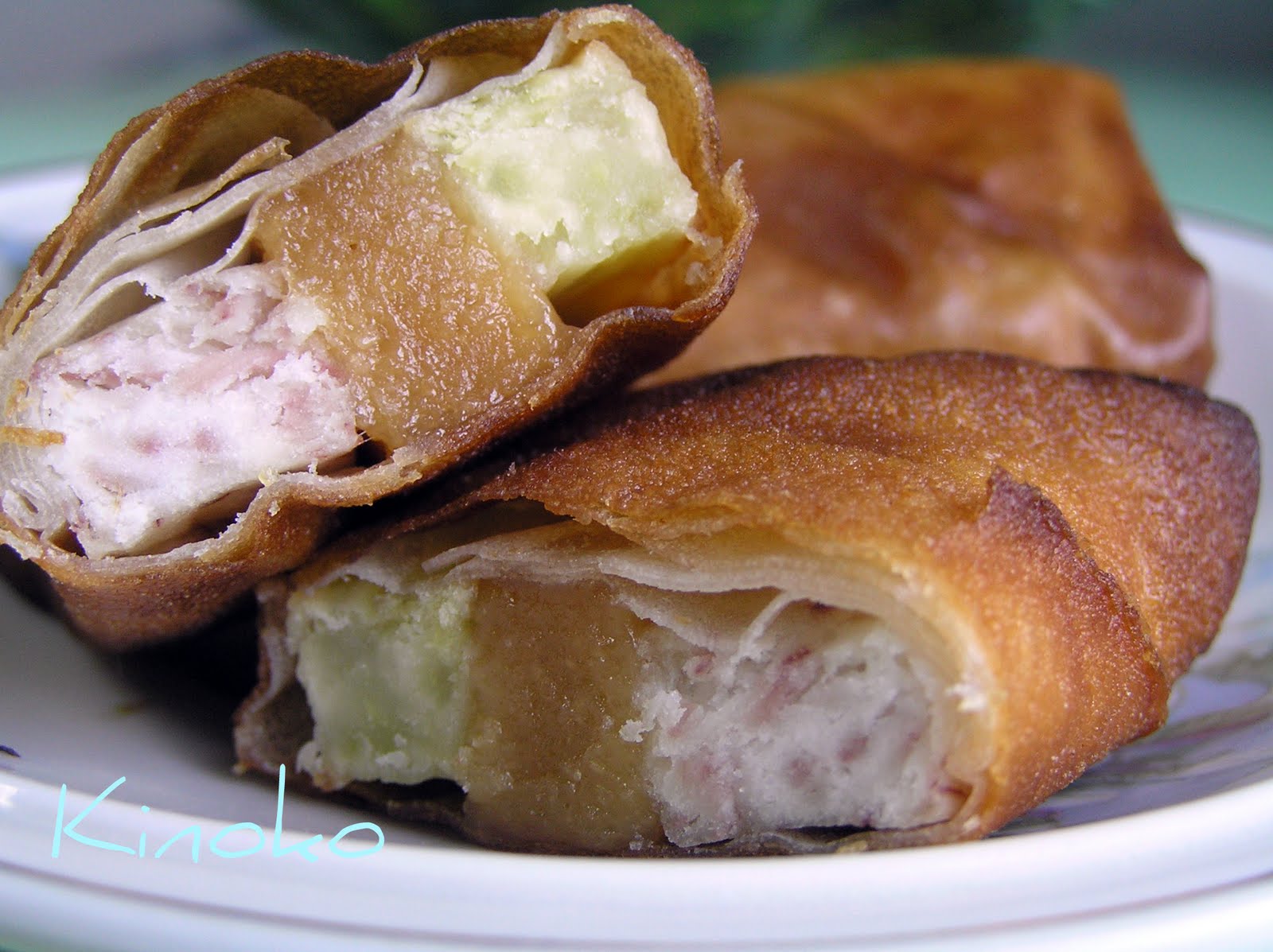 好也别的炸年糕卷,里面有3种不同颜色的料,看了就很想吃。 |