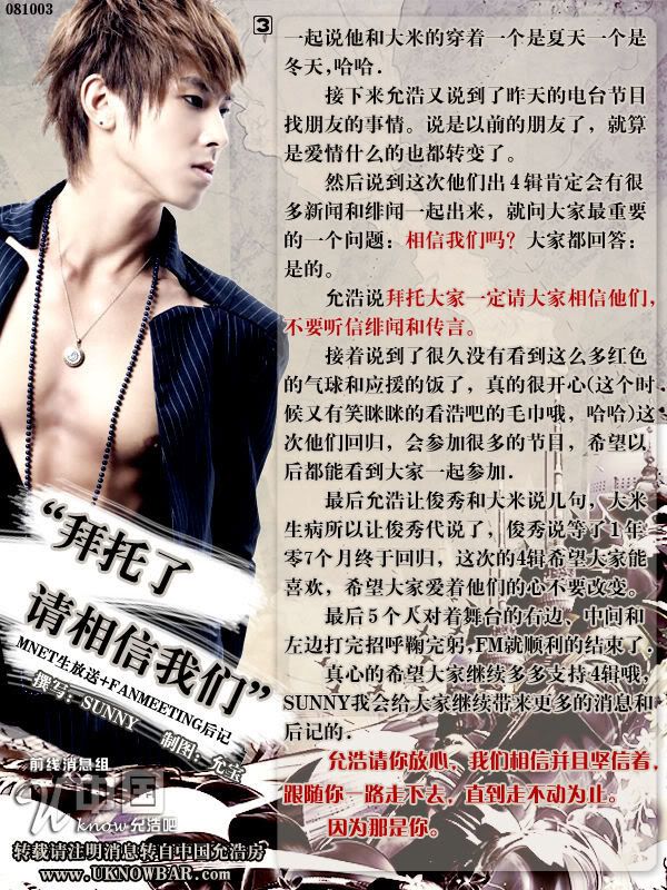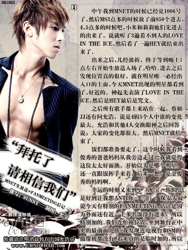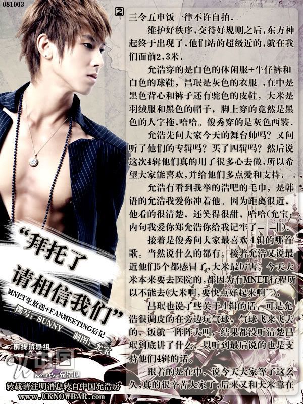 根据歌迷网站的消息,东方神起的允浩已经收到了服义务兵役的通知。