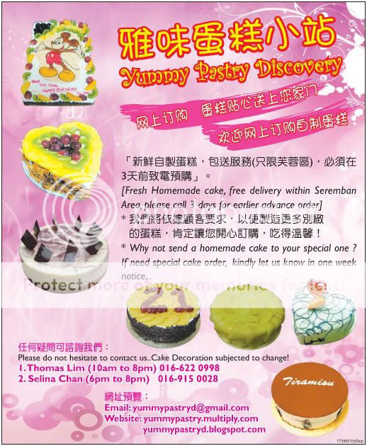 芙蓉终于有网上订购蛋糕了,包载送tiam!!!