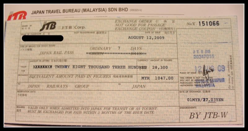 JRPASS 7 Days &#165;28300/RM1047 (在KL购买)