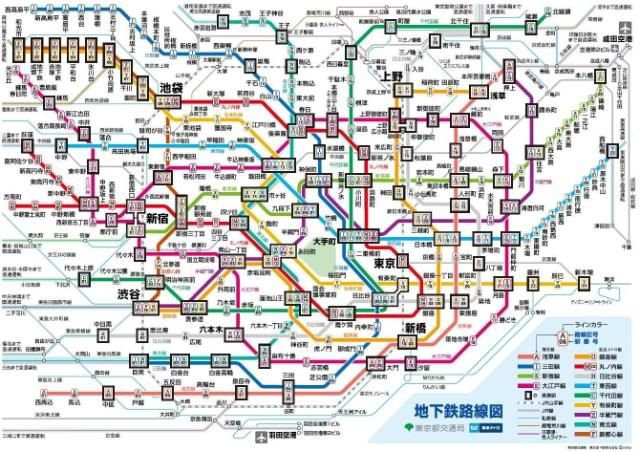 这张只是东京两间铁路公司(都营 & Metro)的路线图而已,JR的除了山手线之外,其他的还没包括在内
