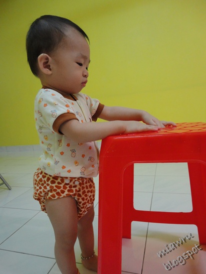 今天是我和婷婷开始真正懂得什么是cloth diaper啦!嗯!原来它比想象的干,我还以为屙了几次尿,就会摸到湿湿的呢!原来都不会哦!不过如果穿了cloth diaper再穿一件裤子的话,就好像会不舒服咯!因为cloth diaper就已经很厚了哦!所以晚上睡觉我想还是用纸尿片比较好啦!