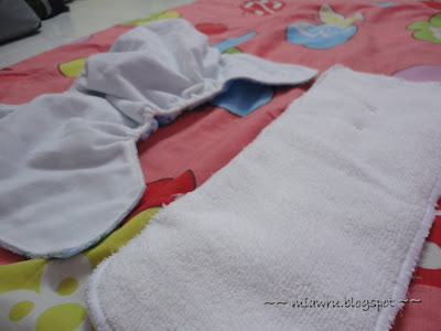 根据附上的说明书,只能够用pureen HAD或是kao attack洗而已,而且还要洗了三四次才能开始穿。pureen had听说很难找到,所以我选择了kao attack。我一个晚上,将全部cd和insert都放在洗衣机里重复洗了三次,才拿出来晾,到第二天下午才收起来。今天,我替婷婷洗了澡后,就开始“开张”替婷婷穿上了。
