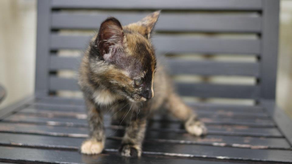 他是一只流浪猫,有天下雨卡在沟渠里面,哥哥把他救了出来。现在暂时养在我家,可是因为家里是不许养宠物所以希望再这里可以为小猫找到爱心的人。