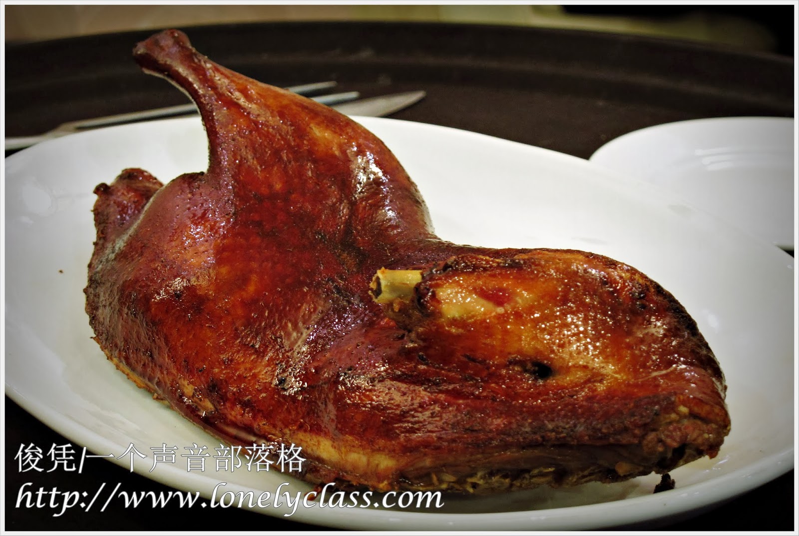 看看那烤得金黄色的鸭皮,皮下有着厚厚的脂肪,吃在口里“卡兹卡兹”的声音,啊!赞!!